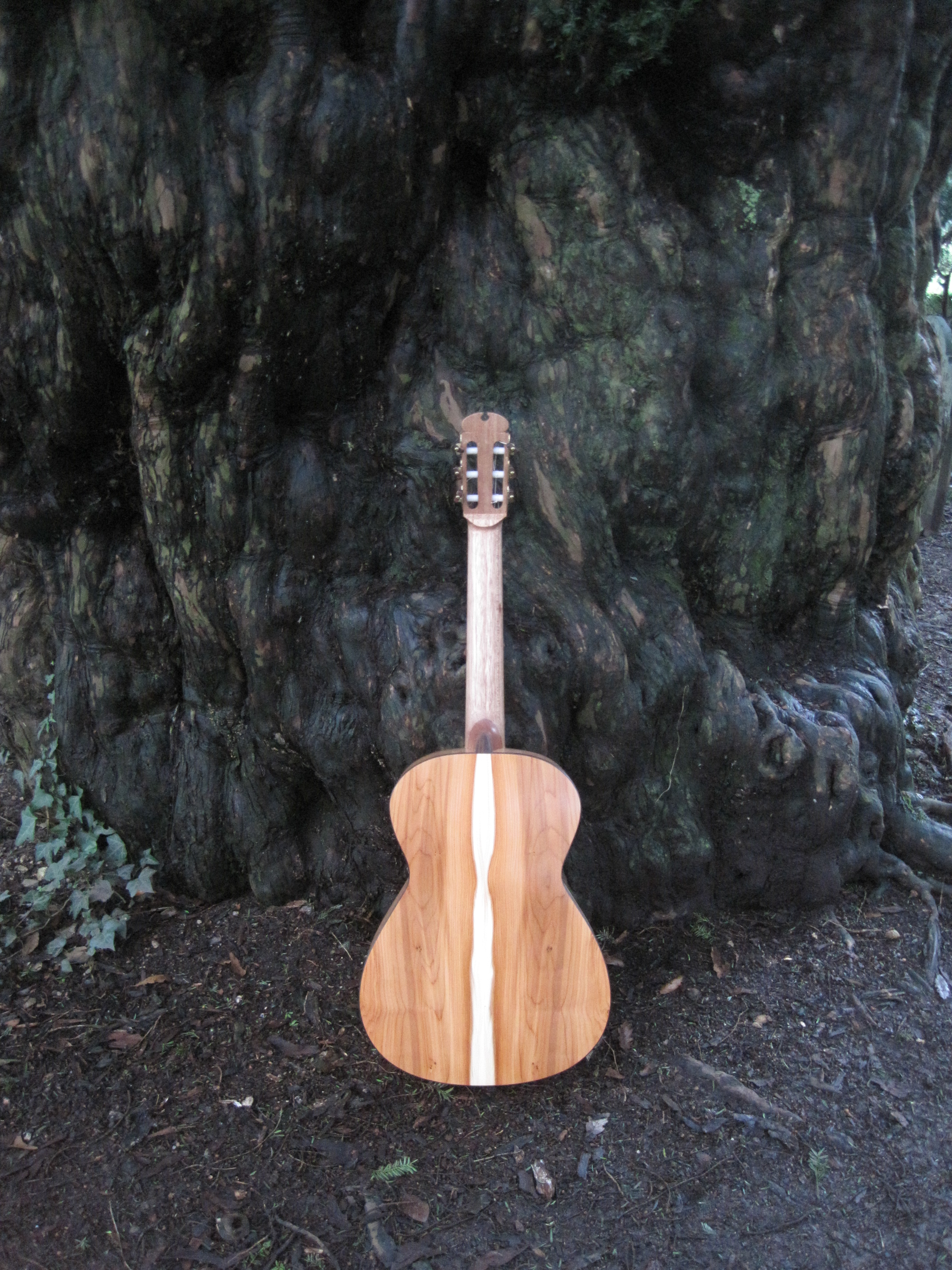- Just finished and waiting to be played in, although this guitar already has an incredible sound. The clarity of tone obtained by the combination of Yew with top quality spruce is something to behold. Professional quality instrument. Recording to follow shortly…