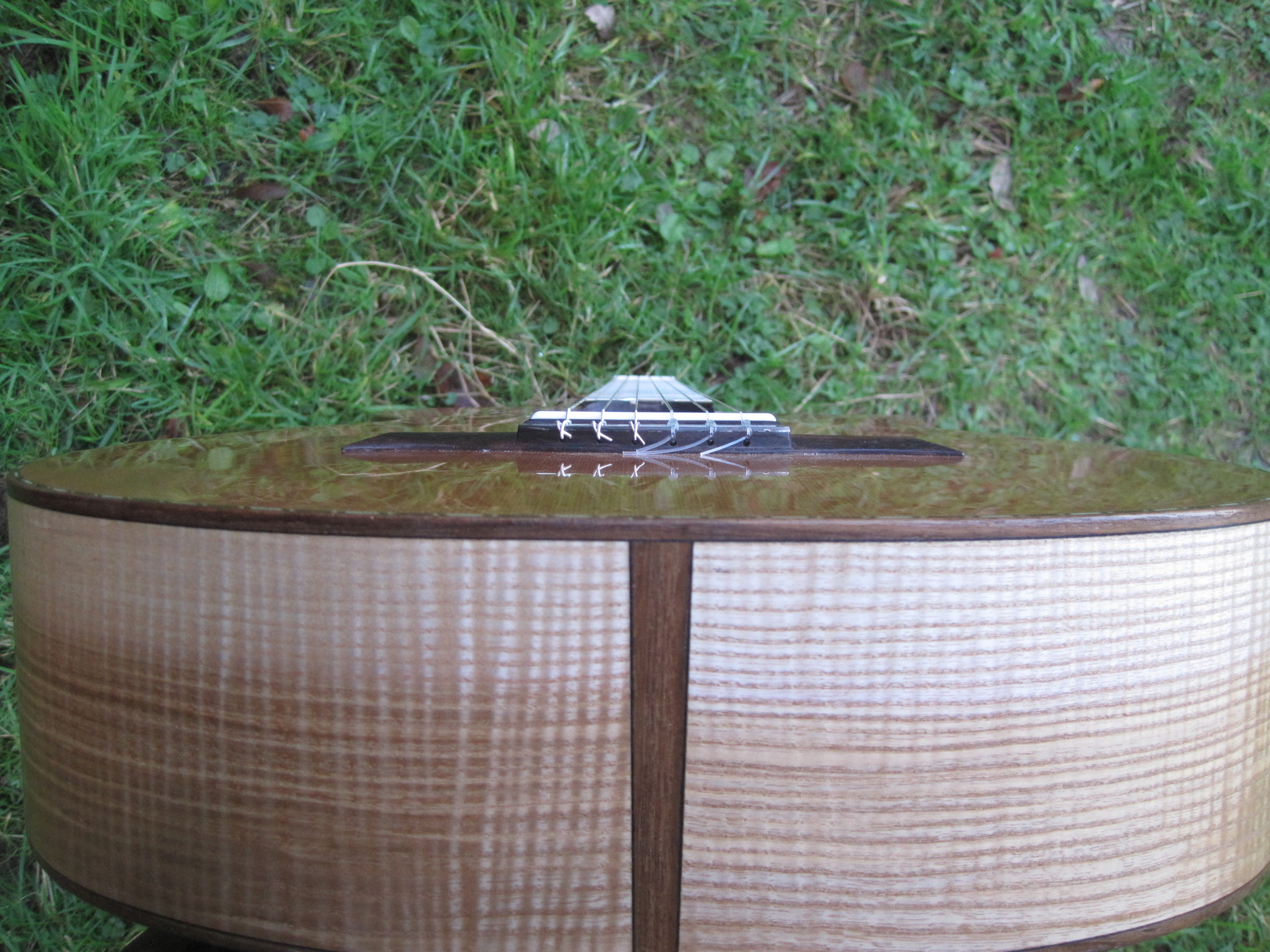 - This guitar is something quite special in terms of playability, responsiveness and quality of sound; it has a wide dynamic range (i.e. can be played softly or loud), sweet ringing trebles, strong mid-range and deep bass with a good tonal balance and separation between all three. The use of Ash for the back and sides imparts a beautiful tone on the overall sound. Professional quality instrument. Recording to follow shortly.