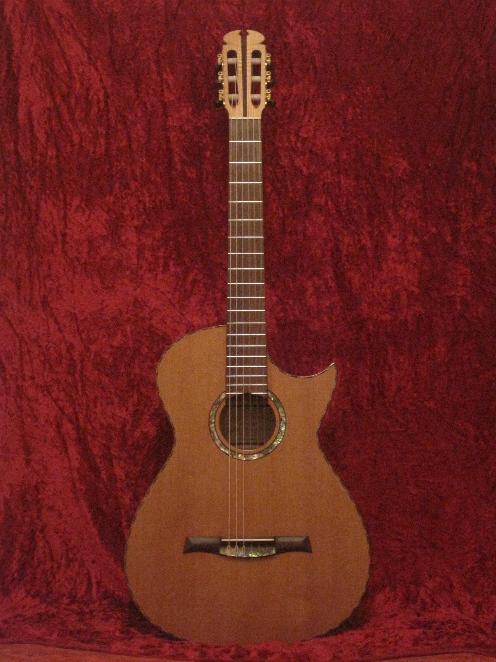 - Ash Cutaway Classical: North American Cedar soundboard, rippled Ash back and sides, Paua shell inlay