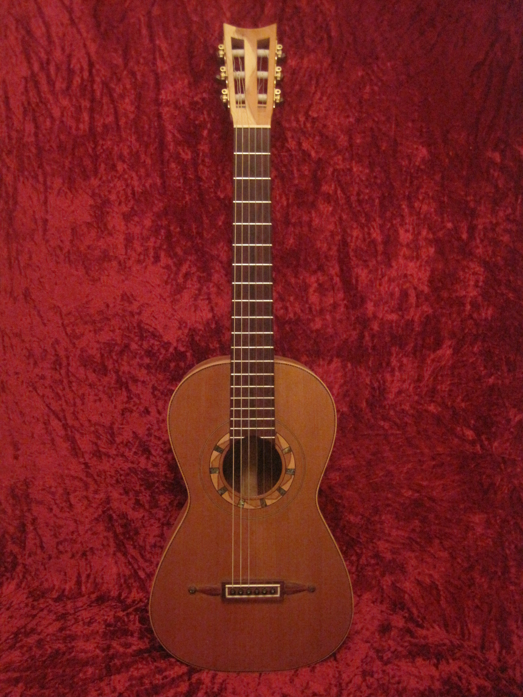 - Built by Andrew Davidson 2012; Inspired by 19th century London-based luthier Louis Panormo. This guitar has an experimental X-bracing system instead of the typical fan braces found on most nylon-strung guitars. The result is a very rich bass response from such a small bodied instrument.